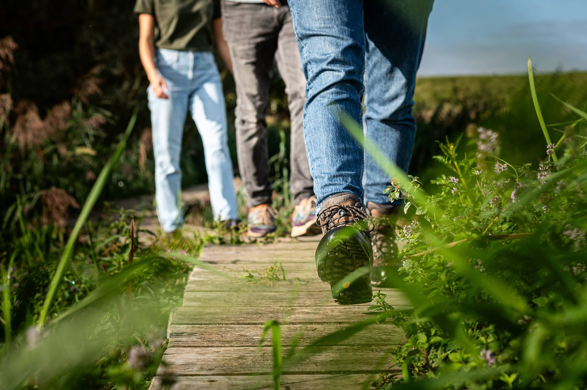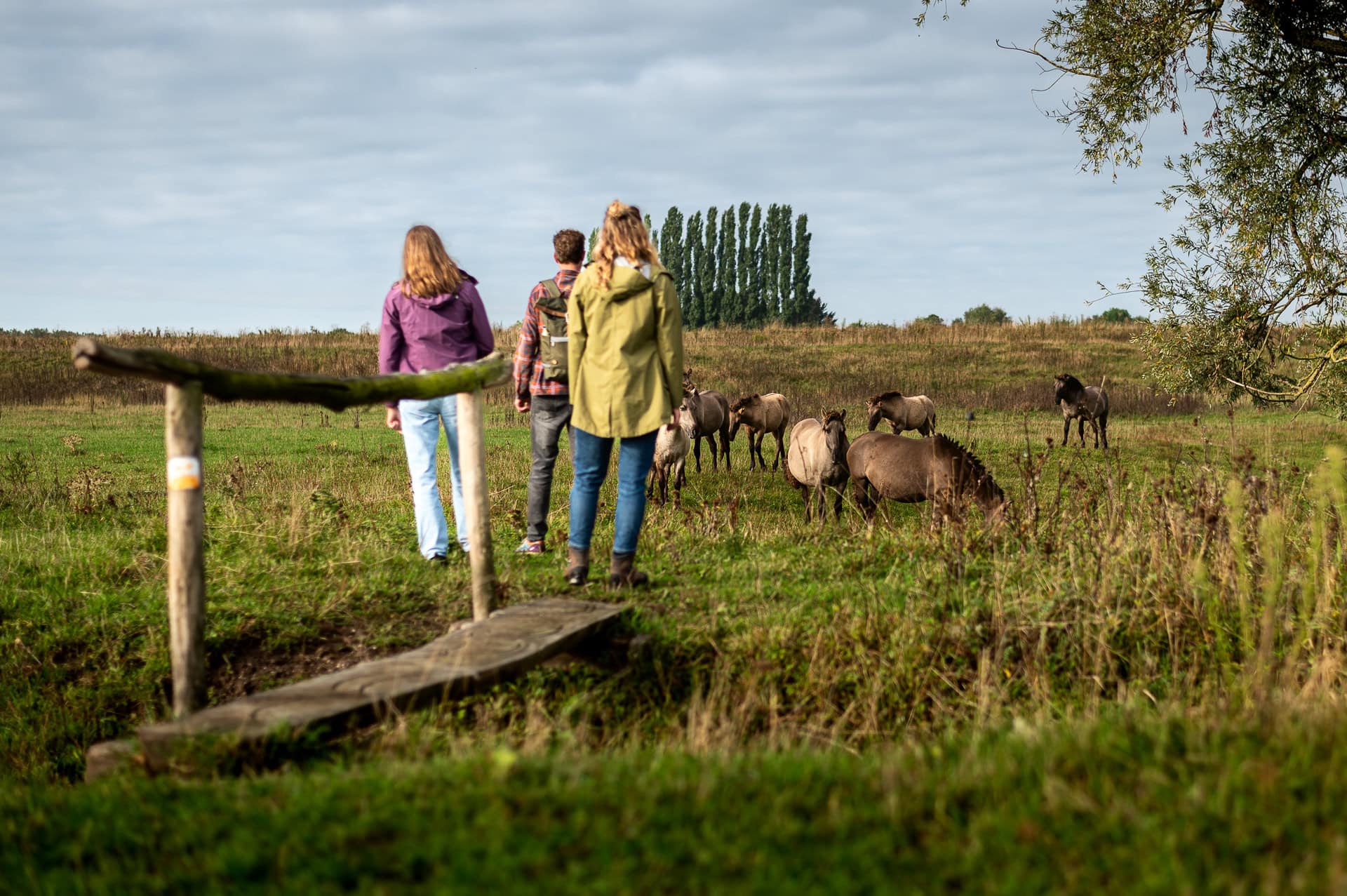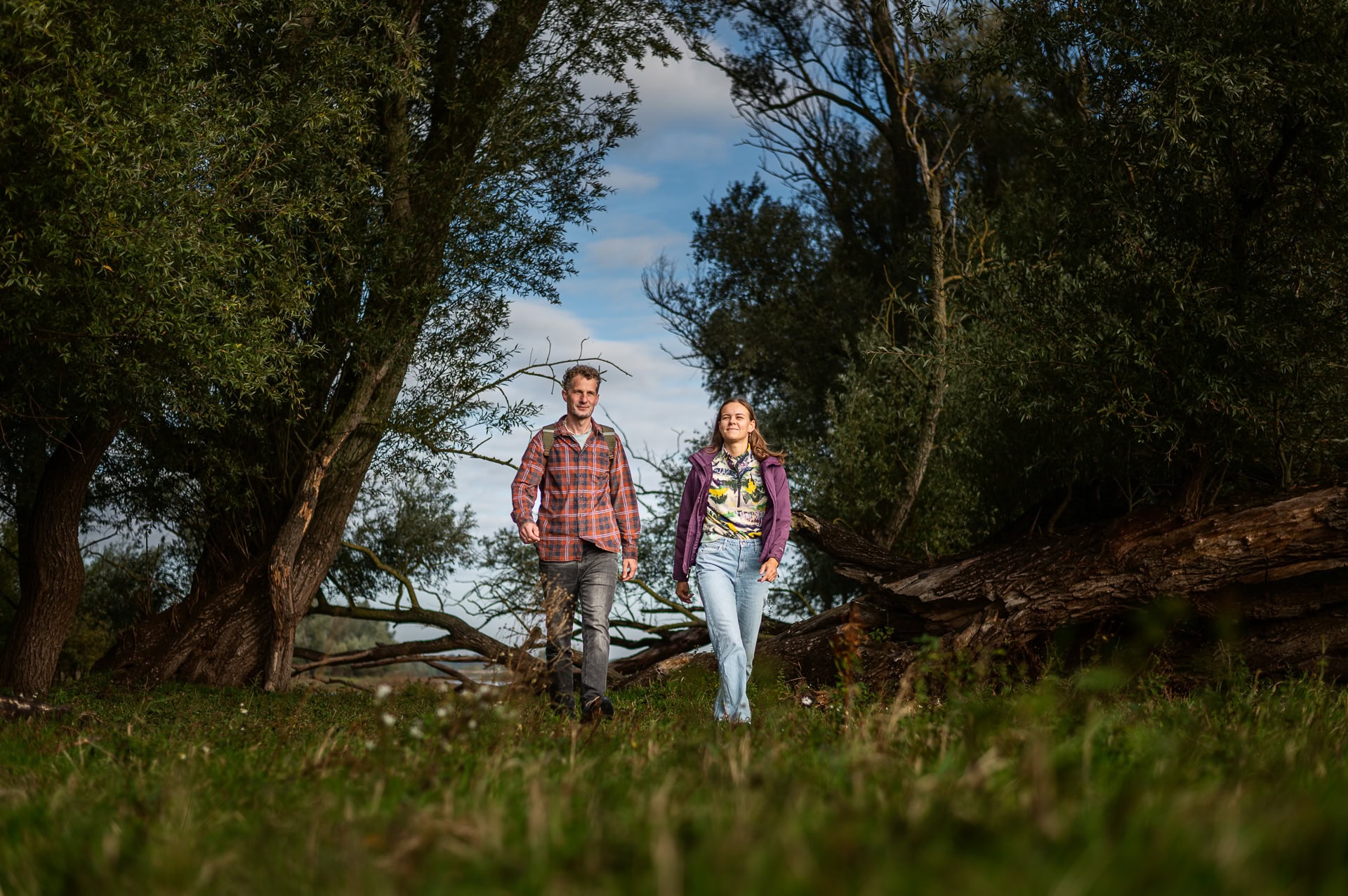 In Pannerden zochten we de wilde paarden op en het bruggetje over het water. Het weiland met een klein meertje liet de diversiteit van de natuur mooi zien. Bij het nieuwe vlonderpad langs de bosrand gaf de zon prachtig tegenlicht op de rietkragen en wandelaars. Perfect voor wie een klompenpad in Gelderland wil ontdekken.